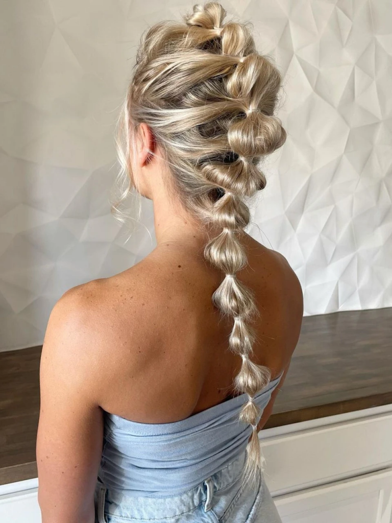 Bubble braid-ul a fost și va rămâne un trend adorat de multe celebrități și fani ai stilului „street style”. Acesta adaugă o textură deosebită părului tău și îl face să arate cu adevărat spectaculos. O împletitură bubble este simplu de realizat și perfectă pentru festivaluri, fiind un look versatil care poate fi adaptat în funcție de stilul tău personal.