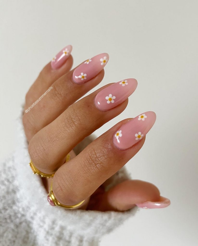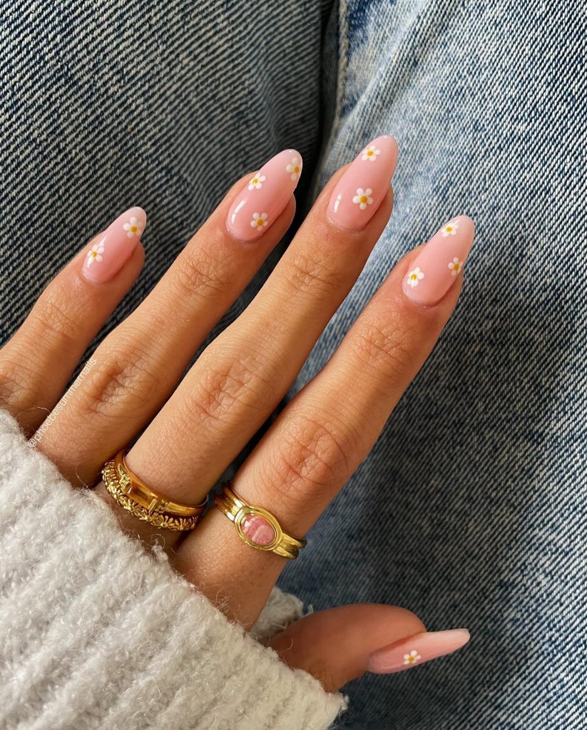Florile nu lipsesc niciodată din tendinţele de primăvară, dar anul acesta vin cu un aer fresh şi reinterpretat. Modelele florale de tip „wendy house” – flori mari, colorate, cu un vibe retro – fac furori pe reţelele sociale şi pot fi integrate cu succes în manichiura ta de Paşte. Dacă preferi ceva mai discret, poţi alege margarete fine pictate pe un fundal roz pal sau transparent. Efectul va fi unul delicat, dar foarte chic.
