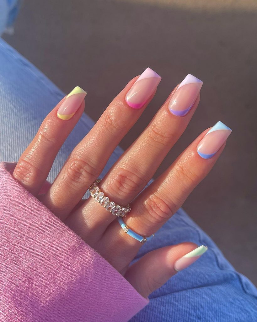 Dacă îţi place manichiura french, dar vrei ceva diferit pentru Paşte, încearcă un french colorat cu vârfuri în nuanţe pastel sau chiar modele în formă de ouă de ciocolată. Pentru un plus de creativitate, poţi adăuga detalii precum iepuraşi stilizaţi sau accente florale minimaliste. Astfel, îţi păstrezi stilul curat şi elegant, dar aduci un omagiu subtil sărbătorii.