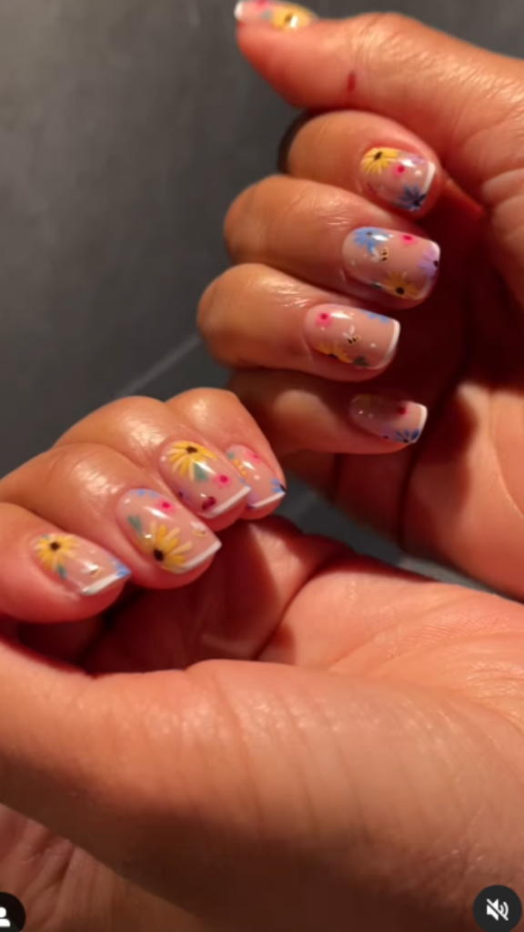 Zendaya a adoptat o abordare diferită, dar la fel de spectaculoasă, alegând o manichiură florală care îmbină minimalismul cu detalii sofisticate. Cu unghii scurte și pătrate, vedeta a ales un micro-french tip, combinat cu flori pictate meticulos. Această manichiură a fost un amestec de simplitate și complexitate, perfectă pentru cele care își doresc un look elegant, dar cu o notă de originalitate.