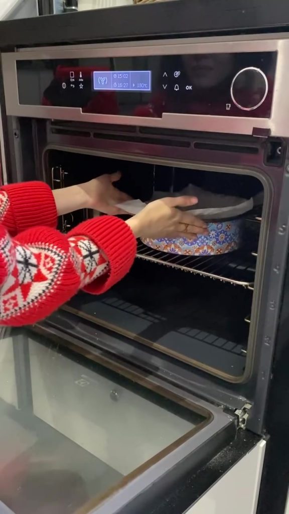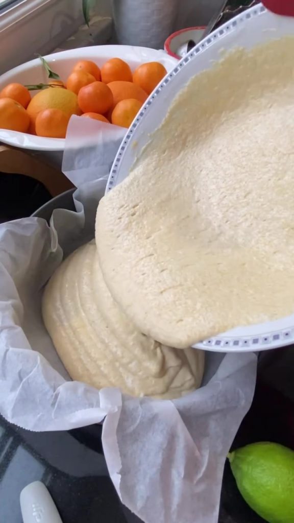 Compoziția se toarnă într-o tavă cu fundul detașabil, tapetată cu hârtie de copt. Se pune în cuptorul încins la 180 de grade timp de 40 de minute și prăjitura cu mălai e gata!