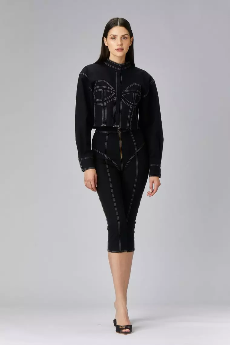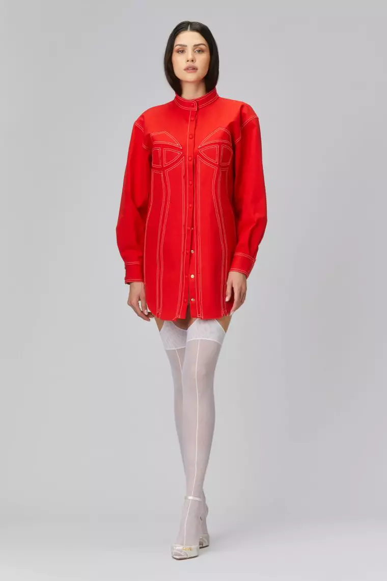 În colecția nouă, avem printuri originale și avem o capsulă de denim roșu și negru, care îmi place foarte mult, pentru că mi se pare o medie foarte bună între design și purtabilitate, între creativ și utilitar. E un denim altfel, infuzat cu toate influențele noastre de lenjerie, are cusături care duc în zona noastră de inspirație și am deconstruit inclusiv piesa noastră cea mai cunoscută în această capsulă.