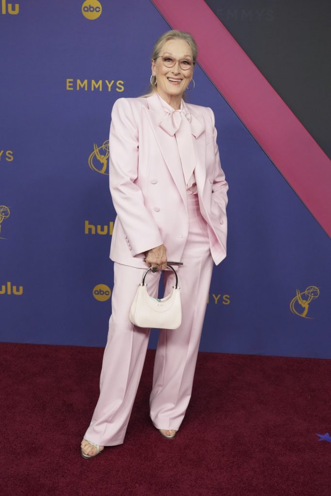Meryl Streep a adus un aer de prospețime și veselie pe covorul roșu cu o apariție mai puțin convențională. Îmbrăcată într-un costum roz, completat cu o bluză cu fundiță la gât, Streep a fost într-o formă de zile mari, zâmbind și radiind o energie pozitivă. Această ținută a fost dovada clară că Meryl Streep știe cum să îmbine moda cu distracția, arătând că eleganța nu trebuie să fie rigidă sau previzibilă.