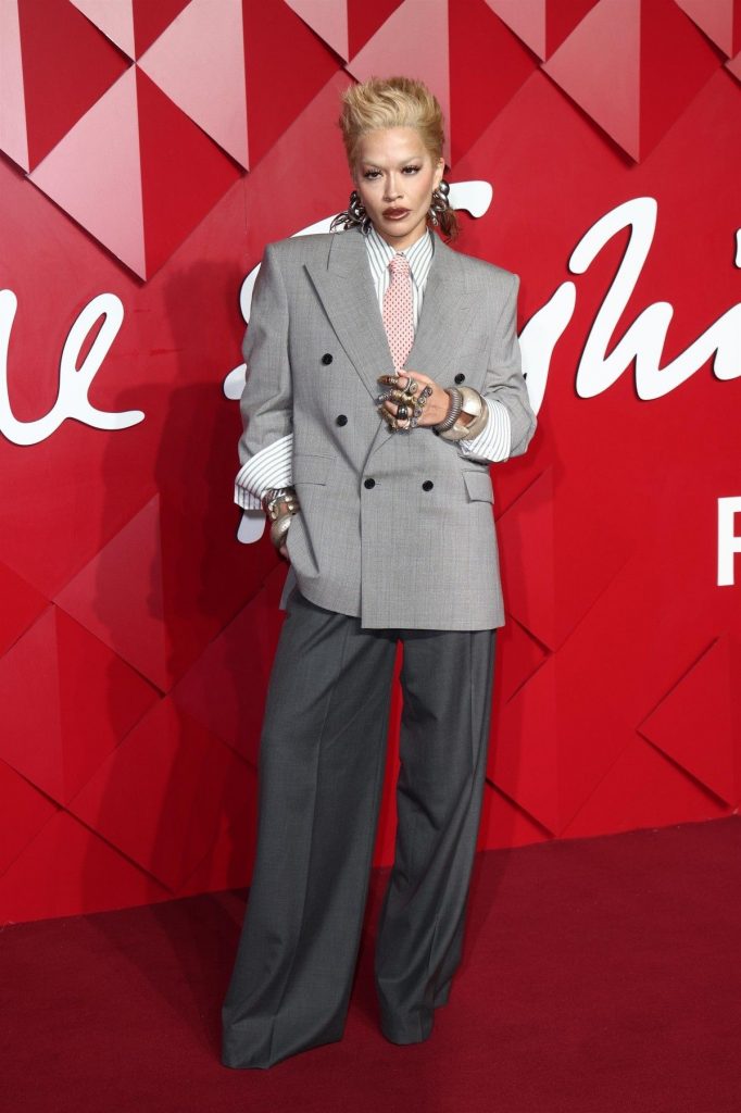 Rita Ora a combinat moda androgină cu cea inspirată de steampunk, fiind practic de nerecunoscut pe covorul roșu al Fashion Awards 2024. Artista în vârstă de 34 de ani a renunțat la șuvițele lungi și brunete în favoarea unei tunsori scurte, părul ei fiind acum blond.