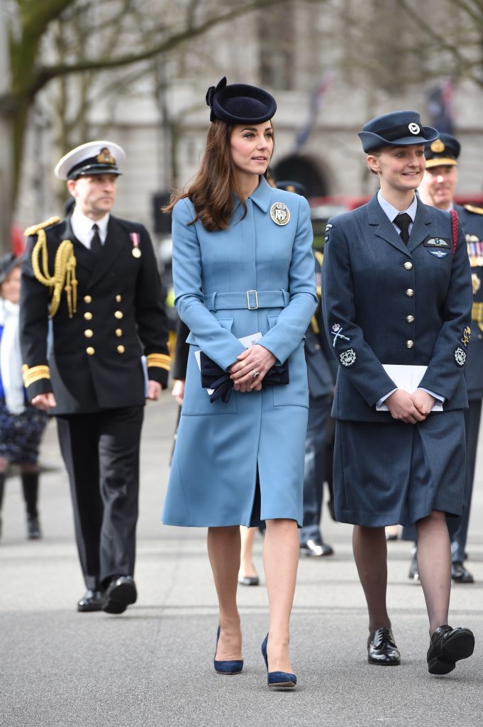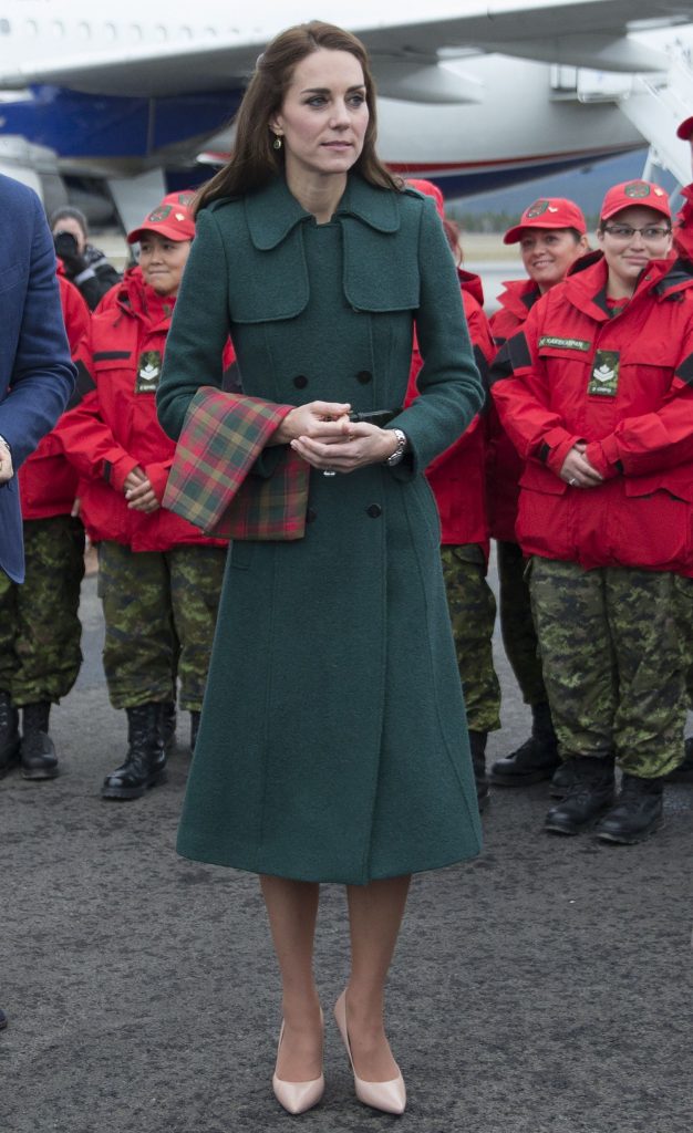 Paltonul McQueen în stil utilitar creat special pentru Kate Middleton rămas în amintirile tuturor celor prezenți la la Memorialul de război din Blenheim din Noua Zeelandă. Piesa vestimentară este o creație Alexander McQueen și are bucunare mari, spate plisat și o curea mare la mijloc.