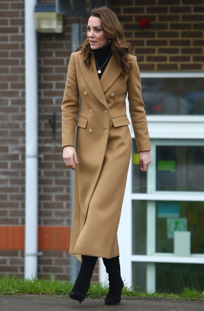 Un palton marca Massimo Dutti a arătat abilitatea lui Kate de a purta haine diplomatice, în timpul unei călătorii din anul 2020. Prințesa a arătat fermecătoare în ansamblul ei bej.