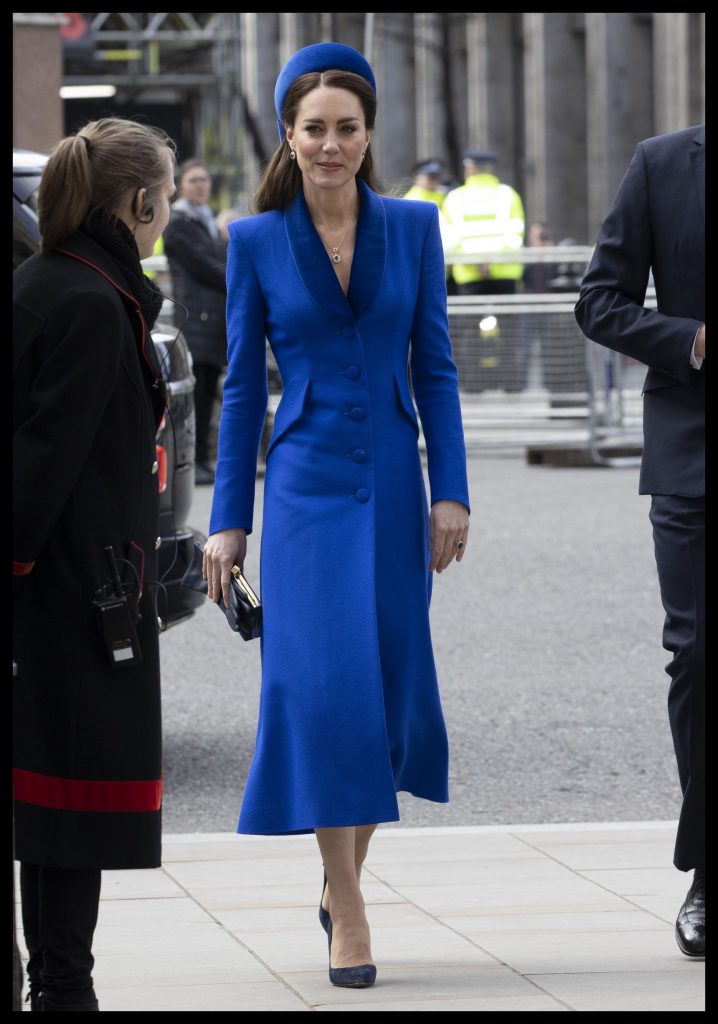 Tot un palton creat de Catherine Walker a ales să îmbrace Prințesa de Wales la Ziua Commonwealth, în anul 2022. Atunci, ea a apărut într-un palton albastru regal spectaculos.