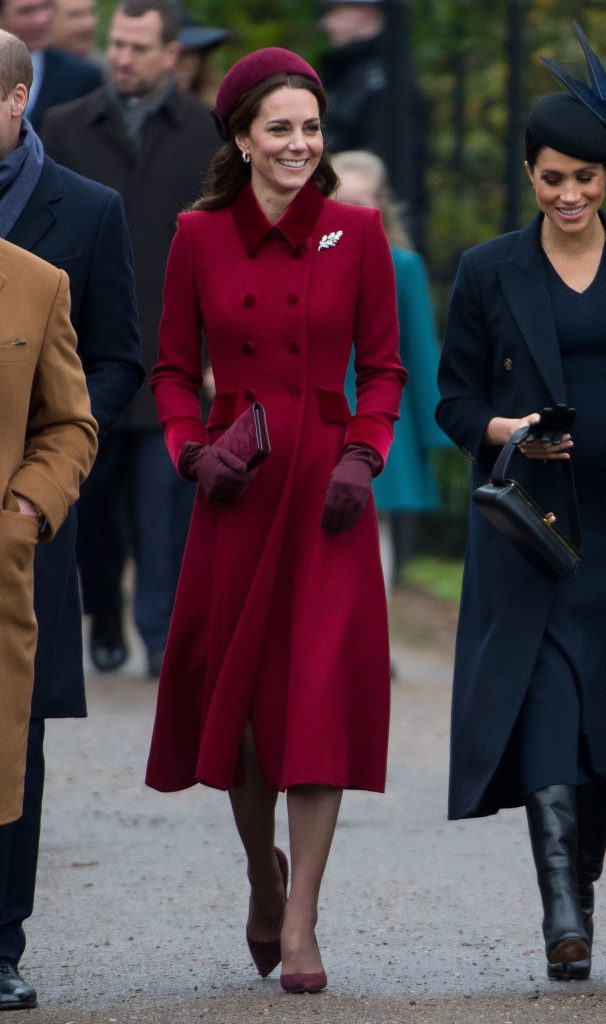 În ziua de Crăciun în anul 2018, Prințesa de Wales a ales să participe la Slujba de la Biserică într-un palton Catherine Walker vișinie.