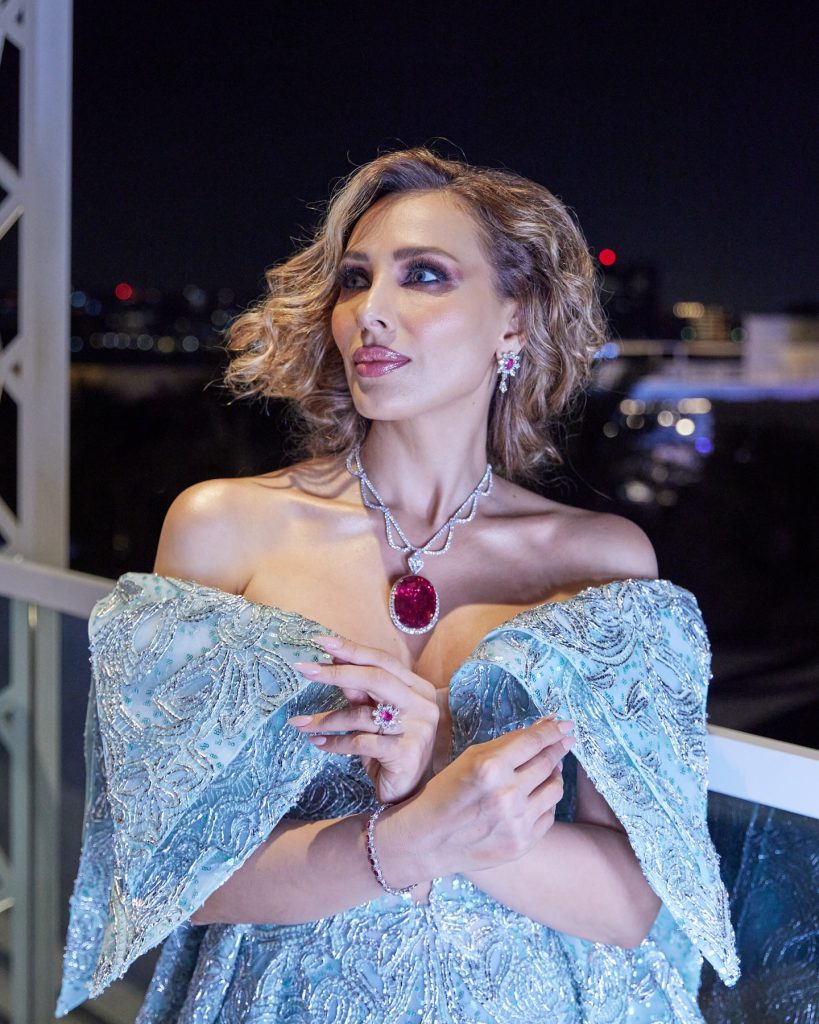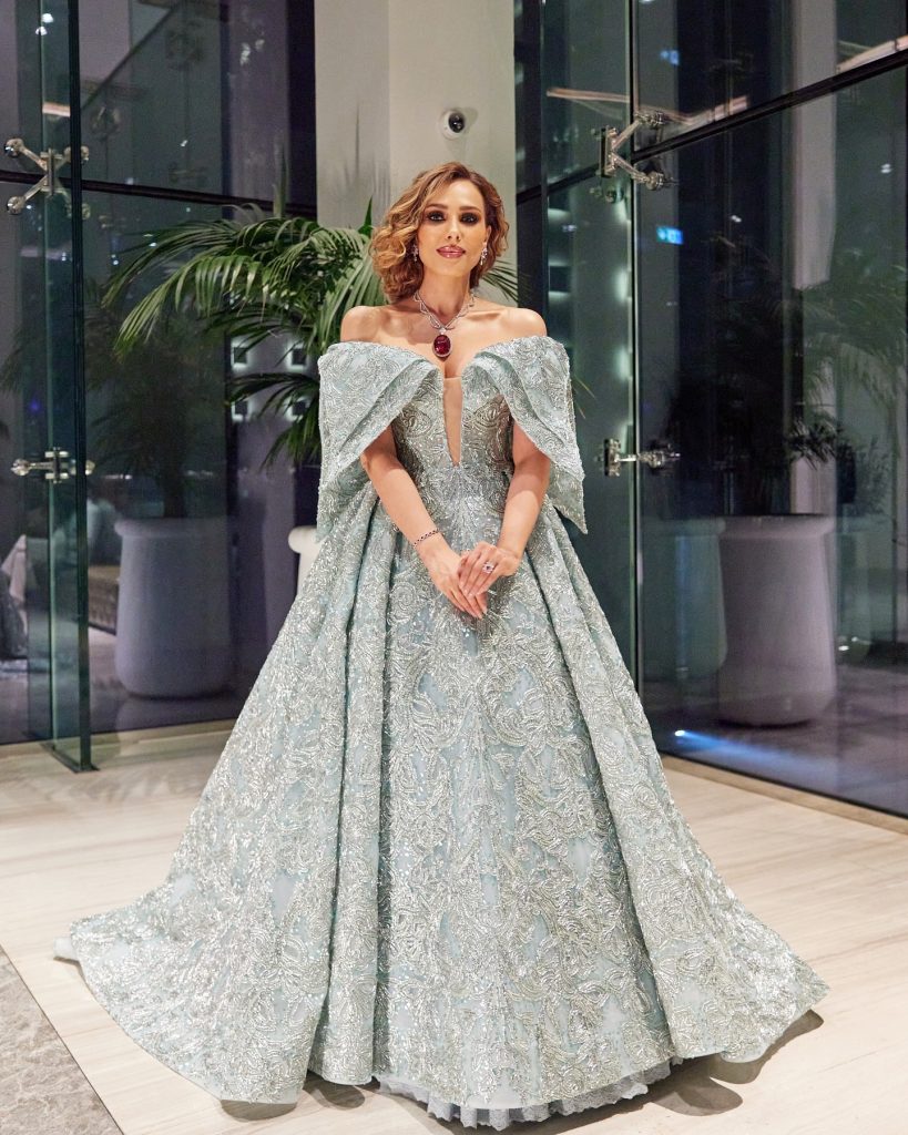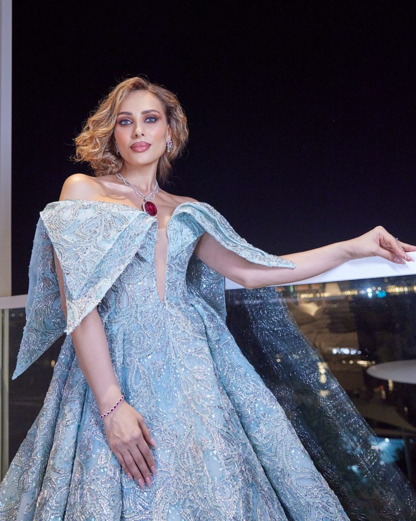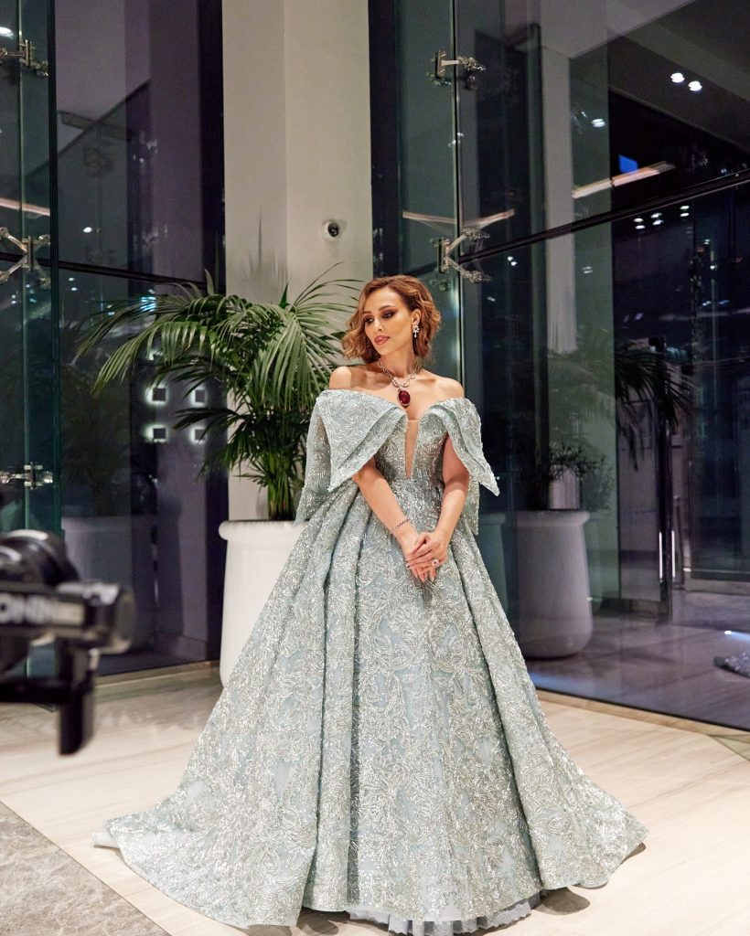 Iulia Vântur (44 de ani) s-a remarcat în cadrul premiilor IIFA 2024 cu mai multe ținute, una mai spectaculoasă decât cealaltă. Fosta prezentatoare de la „Dansez pentru tine” a optat în primă instanță pentru o rochie de prințesă de culoare bleu și cu umerii goi. Rochia amplă a fost accesorizată cu bijuterii Dahmani. Iulia a purtat un colier cu un rubelit uriaș de 200 de carate, cercei și inel din același set. Ca să lase bijuteriile și rochia să strălucească, Iulia a optat pentru un machiaj discret și o coafură simplă.