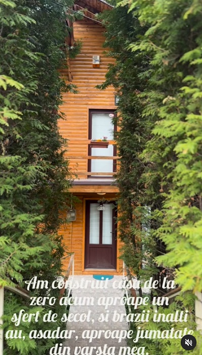 „Am venit în acest sat invitată fiind la masa de Paște a unor prieteni. Am luat masa și am pornit pe drumurile acestea de munte la pas, să dăm burta jos, cum se zice. Pe un copac, scrijelit, așa, un număr de telefon. Mi s-a părut foarte romantic acest lucru. La vremea aceea eram un simplu angajat al televiziunii, deci nici gând să visez pe atunci să îmi construiesc o casă. O zi după, am sunat, am aflat că proprietarii erau niște oameni în vârstă, care locuiseră cândva în acest sat. M-am întors după un timp la ei, ne-am plăcut și împreună am căutat soluții și am găsit o soluție pe termen lung. Și uite așa a devenit terenul al meu” – povestea vedeta pentru sursa amintită anterior.