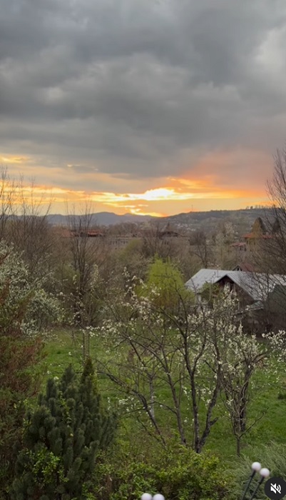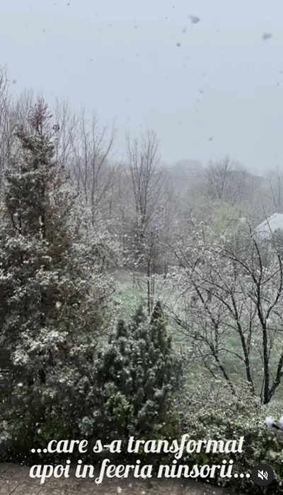 Apusul e minunat indiferent de vreme. După soarele primăverii, a venit o ploaie blândă, care s-a transformat în feeria ninsorii… pentru ca soarele primăverii să apară din nou. Toate acestea, în aceeași zi!”, a adăugat Andreea Marin în descrierea clipului.