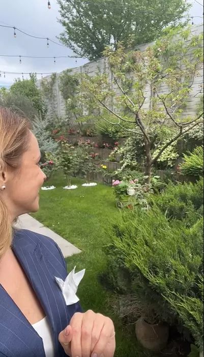 Pe lângă locuința impresionantă pe care a construit-o la poalele munților, prezentatoarea a amenajat și o grădină, alături de o livadă care completează peisajul idilic.