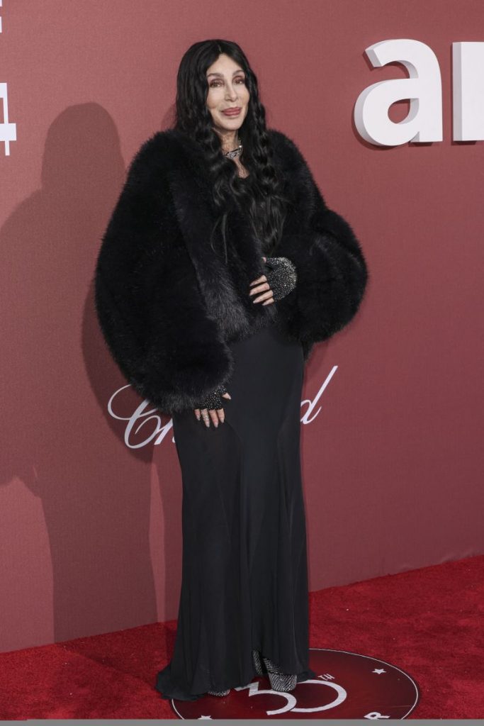 Cher și iubitul ei, Alexander Edwards, și-au făcut și ei apariția la eveniment, artista optând pentru o rochie neagră, simplă și o haină de blană scurtă.