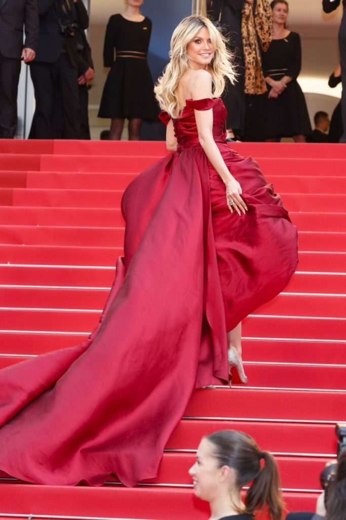 Asigurându-se că luminile reflectoarelor nu stau departe de ea, supermodelul Heidi Klum a întors capetele într-o rochie de seară roșu intens cu o trenă distinctivă, ce i-a scos în evidență picioarele tonifiate.